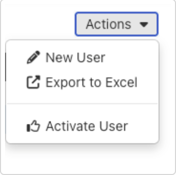 - Within the Manage Users app you will want to click Actions on the top right and select New User from the menu.